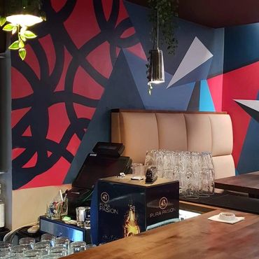 Très belle experience, j'a réalisé cette décoration en 5 jours pendant qu'ils renovaient tout le bar.